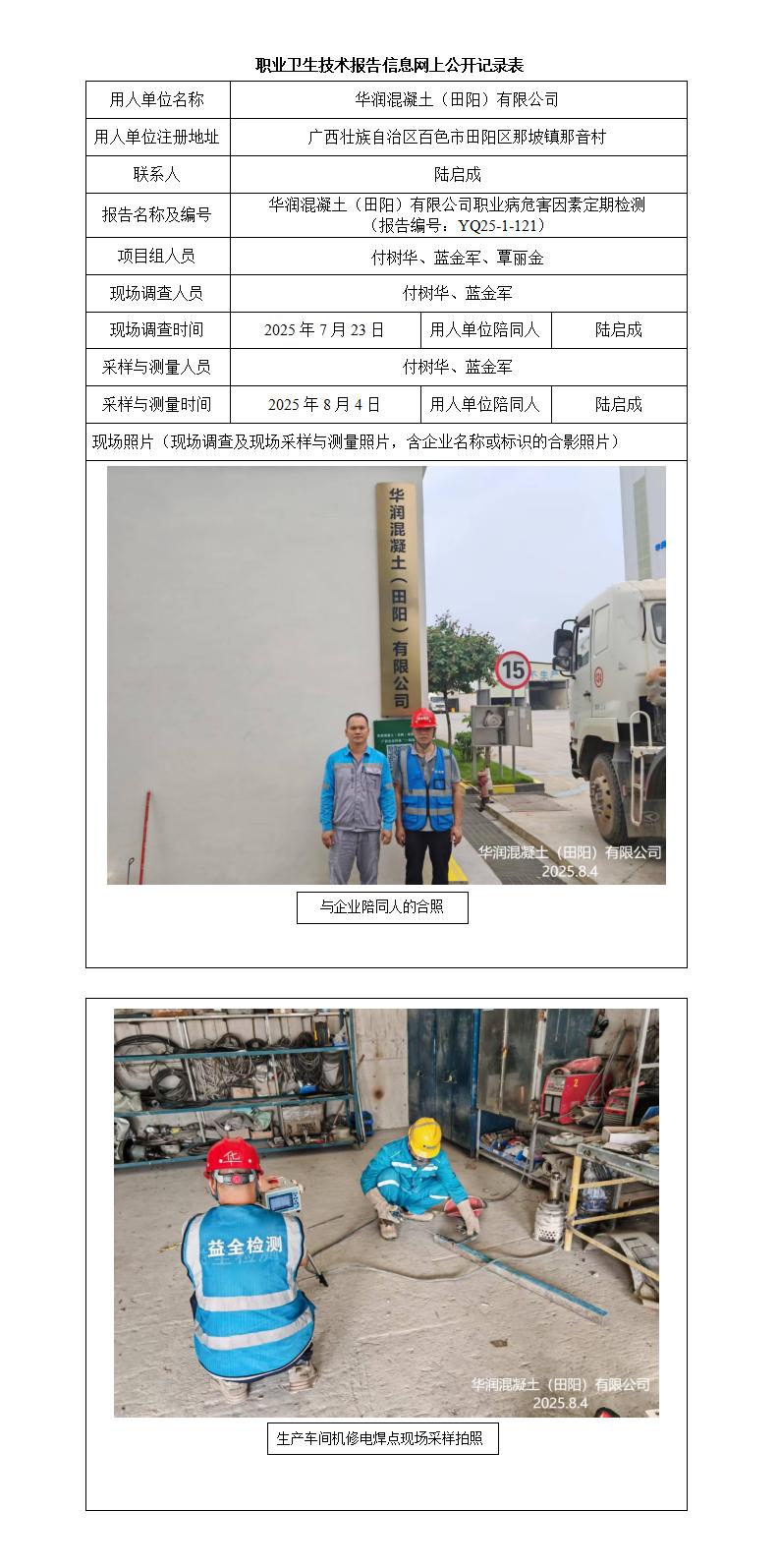華潤(rùn)混凝土(田陽(yáng))有限公司職業(yè)病危害因素定期檢測(cè)